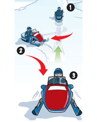 If you do lose forward momentum when trying to climb you should not attempt to continue your ascent. Instead you should stop the snowmobile and make a K-turn to return down the hill.